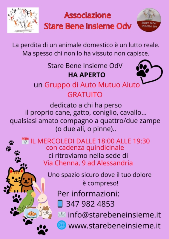 Per questo abbiamo attivato un nuovo Gruppo di Auto Mutuo Aiuto dedicato al lutto animale, in presenza ad Alessandria in Via Chenna, 9: uno spazio senza giudizio, dove condividere il proprio dolore con chi ha vissuto la stessa esperienza, guidati da volontari appositamente formati.